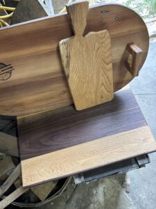 Samples of cutting boards, charcuterie boards and small hot plates or mini charcuterie boards